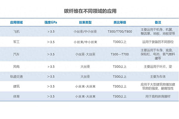 碳纖維被認為是高性能纖維的杰出代表,以高比強度和高比模量而被認可,同時還具有密度低、耐高溫、耐腐蝕、抗疲勞等一系列的優勢,因此發展迅猛成為替代金屬材料的首選材料。現如今的碳纖維已經廣泛的應用到航空航天、軌道交通、國防軍事、醫療器械以及海洋工程、風力發電、體育休閑等多領域中,是國民經濟和現代化國防的重點物資材料。
